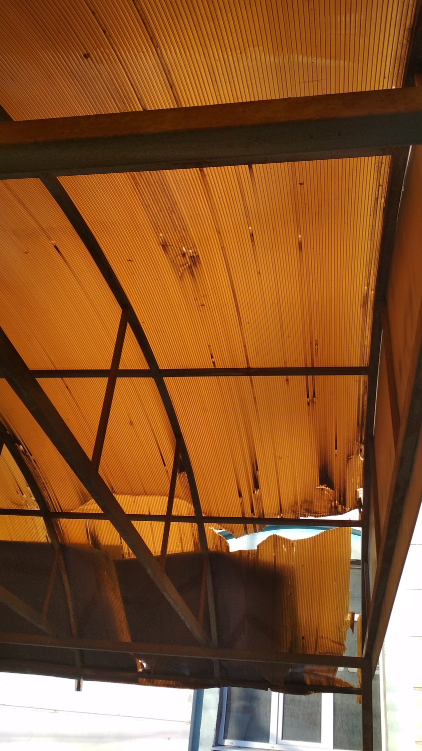 Если вы устали от дешевых материалов, если у вас ситуация, как на фото ниже, приходите к нам, центр поликарбоната даёт 5 лет гарантии на листы премиум класса. в иных случаях мы поможем сделать оптимальный выбор, исходя из ваших возможностей.